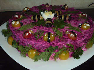Tops makraga kodujuustu, kaks keedetud muna, kolmandik pikka kurki, üks tomat, majoneesi, maitserohelist, soola, pipart, sidrunimahla. Ained kuubikuteks ja kokku segada. Gruusia köök on siiski üle kõige! |