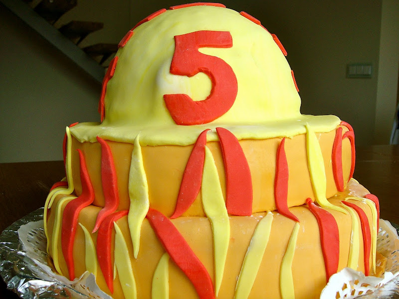 Veel sai vahepeal meisterdatud üks tuletõrje teemaline tort. Selle tordiga oli päris raske. Püüdsin teha hästi head ja mahlakat torti ning samas soovisin seda katta suhkrumassiga. Tulemus kippus natuke sulama ja vajuma. Raskust oli tordil ka omajagu - 6,5 kg . Saan täitsa aru, miks nad neid suhkrumassi kaunistusega torte peaaegu kuivast keeksist teevad.
