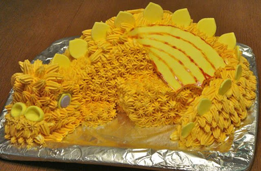 Vanema poja sünnipäevatort sai inspiratsiooni filmist "Kuidas taltsutada lohet". Lohe sees on kaks 10 munast küpsetatud biskviiti. Ühest sai keha ja teisest saba, pea ja jalad. Biskviitide vahele panin ohtralt kohupiima-vahukoore segu koos maasikate ja mustikatega. Lohe "karvkatte" on tehtud toorjuustu-vahukoore segust. Tiivad ja muud väiksed vidinad suhkrumassist.