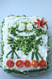Eelmisel kevadel tegin lapsele 2aastaseks saamise puhul KONNATORDI. Soolane võileivatort... kahjuks ei mäleta, mis vahele läks.