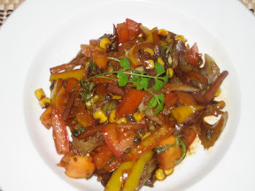 Aedvilja wok. Kasutasin minimaisi asemel tavalist ja punase paprika asemel kollast. Ja soola jätsin panemata (lisasin selle ka kommentaaridesse).