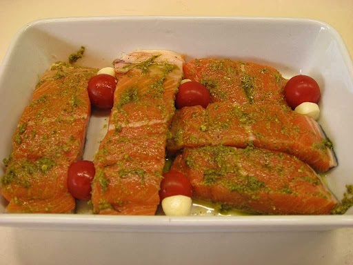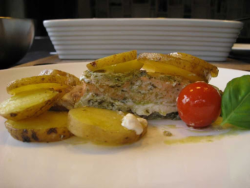 Aga kuna mul oli värsket kartulit ja lõhet, siis tegin pestokala kartuliviiludega.