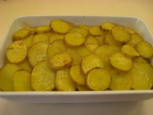 Ja minu kohta ikka päris ilus tuli. Maitse oli enam-vähem, natuke mage, nagu ikka. Kartulitele võiks kuidagi veel mingeid ürte lisada..minu arust. Ja siis vormi enam tomatid sedasi ei mahtunud, nagu retseptis oli öeldud, nii et panin kirsstomateid ja hoopiski kartulite alla. (tegelikult minu jaoks jäigi see paigutamise asi natuke segaseks....) Nii et ma ei tea, kas need pildid üldse selle toidu juurde sobivad, aga kuna ma nad ära tegin, siis siin nad on: