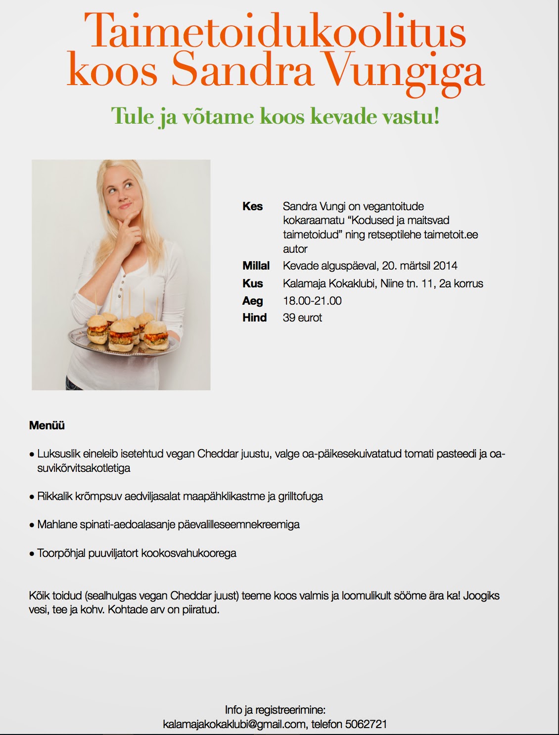 Oled oodatud rikkalikke taimseid toite kokkama ja koos kevade algust tähistama!