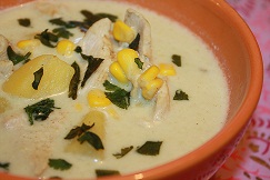 Õhtuks tegin kanasuppi maisi ja kookospiimaga,juurde peterselli-küüslaugubatoone.