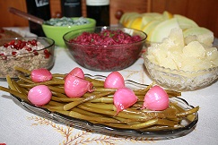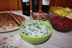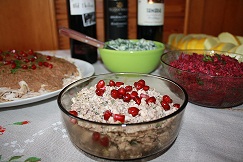 Reedel oli meil esindatud gruusiapärased toidud. Külas olid sõbrannad peredega. Laual oli hatshapuri, azelila, praetud Suluguni, charklis mhkali, abhazura, kana-satsivi,spinat koriandri-jogurtikastmes, vürtsidega hautatud šampinjonid, gupta, gomi ja gozinaki. Kõik toidud said kiita. Aga piltidega läks mul nihu. Nimelt palusin mehi, et nad toite pildistaksid. Osasid nad ka jäädvustasid, aga suuremat rõhku pandi veinipudelite pildistamisele ja viimased toidud jäidki pildistamata :)