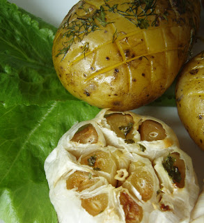 Õhtuks fooliumis küpsetatud kartulid ja küüslaugud