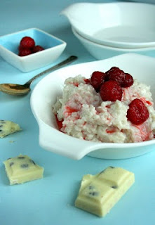 Mina tegin hommikul riisipudingut valge šokolaadi ja maasikatega. Imehea oli. Laps sõi enamusest ära :)
