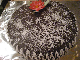 Minu ülikooliaegsete kursaõdede ühisel istumisel olid laual lõhepirukas, šampinjonid sinihallitusjuustuga, minu tehtud seemne-pähklileib ja prantsuse šokolaadikook, lisaks pähkleid-kuivatatud puuvilju ja mandariine. Pilt on ainult koogist: