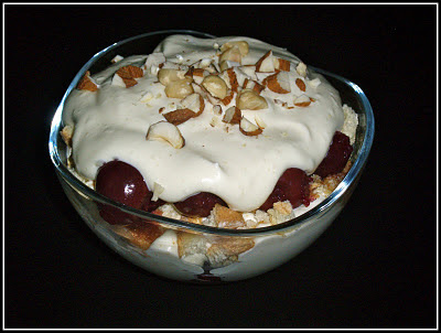 Tegin taas kausikooki küpsistest, Vana Tallinnast, maasikatest, vahustatavast vaniljekreemist ja granaatõunaseemnetest. Pilt suurem asi pole, sest kauss ei paista hästi läbi :D Kook aga korvab ;) http://kulinaarsedeksitused.blogspot.com/ |