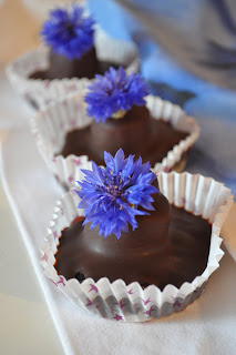 Ja jõhvika-kohupiimatort: rukki-biskviidst ja jõhvika-kohupiimast, kaunistatud sügavkülmast "nopitud" rukkililledega ;)
