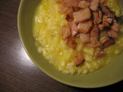Pruunista pannil peekon ja lisa risotole. Serveeri kohe.