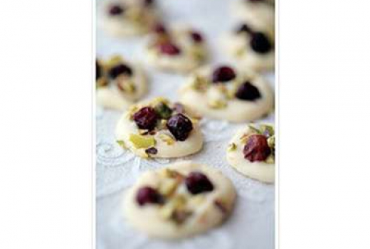 Valge šokolaad jõhvikate ja pistaatsiapähklitega