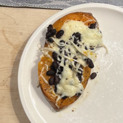 Maguskartulid mustade ubade ja Cheddari juustuga