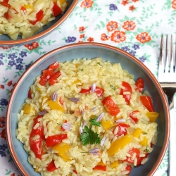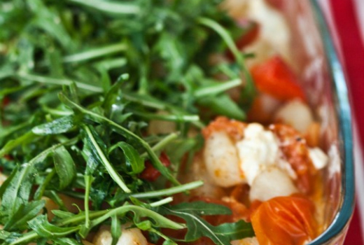 Gnocchi-vorm röstitud tomatite, paprika ja fetaga
