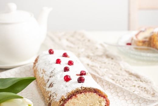 Rullbiskviit maasikate ja kohupiimakreemiga