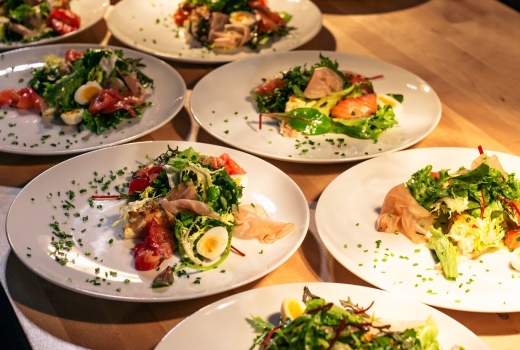 KOBARa lahtine kalapirukas peedi graavilõhe, värske salati ja vutimunaga