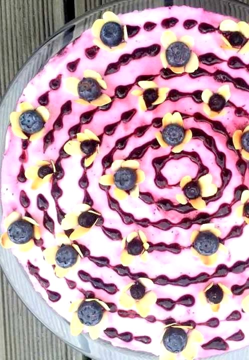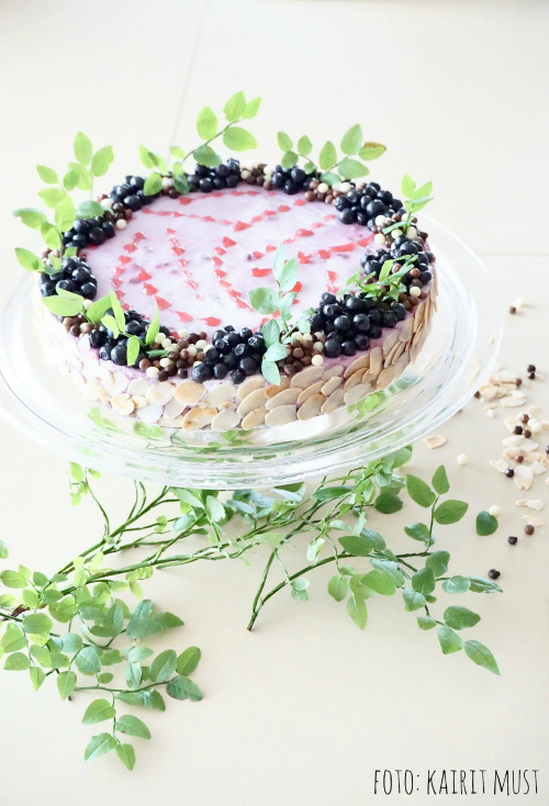Suvel valmista seda kooki värsketest püreestatud marjadest, muul ajal kasuta mustikamoosi. Kooki on mugav teha, kuna see ei vaja küpsetamist.