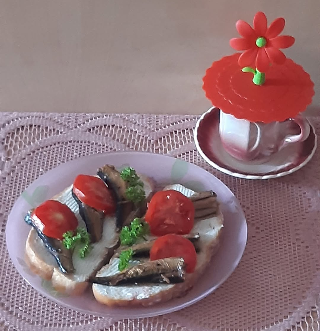 Laota sprotid leivale, kaunista hakitud murulaugu ja kapparitega.