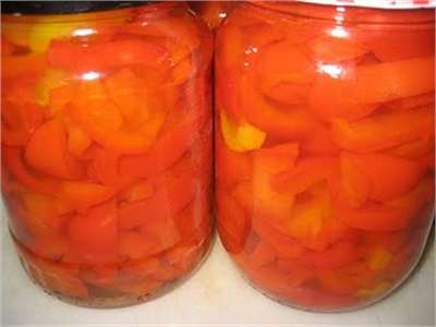 Lisa jaokaupa paprikat, lase kaane all natuke keeda ja tõsta sõelaga purki. Lisa järgmine ports, seni kuni kogu paprika on marinaadist läbi käinud.