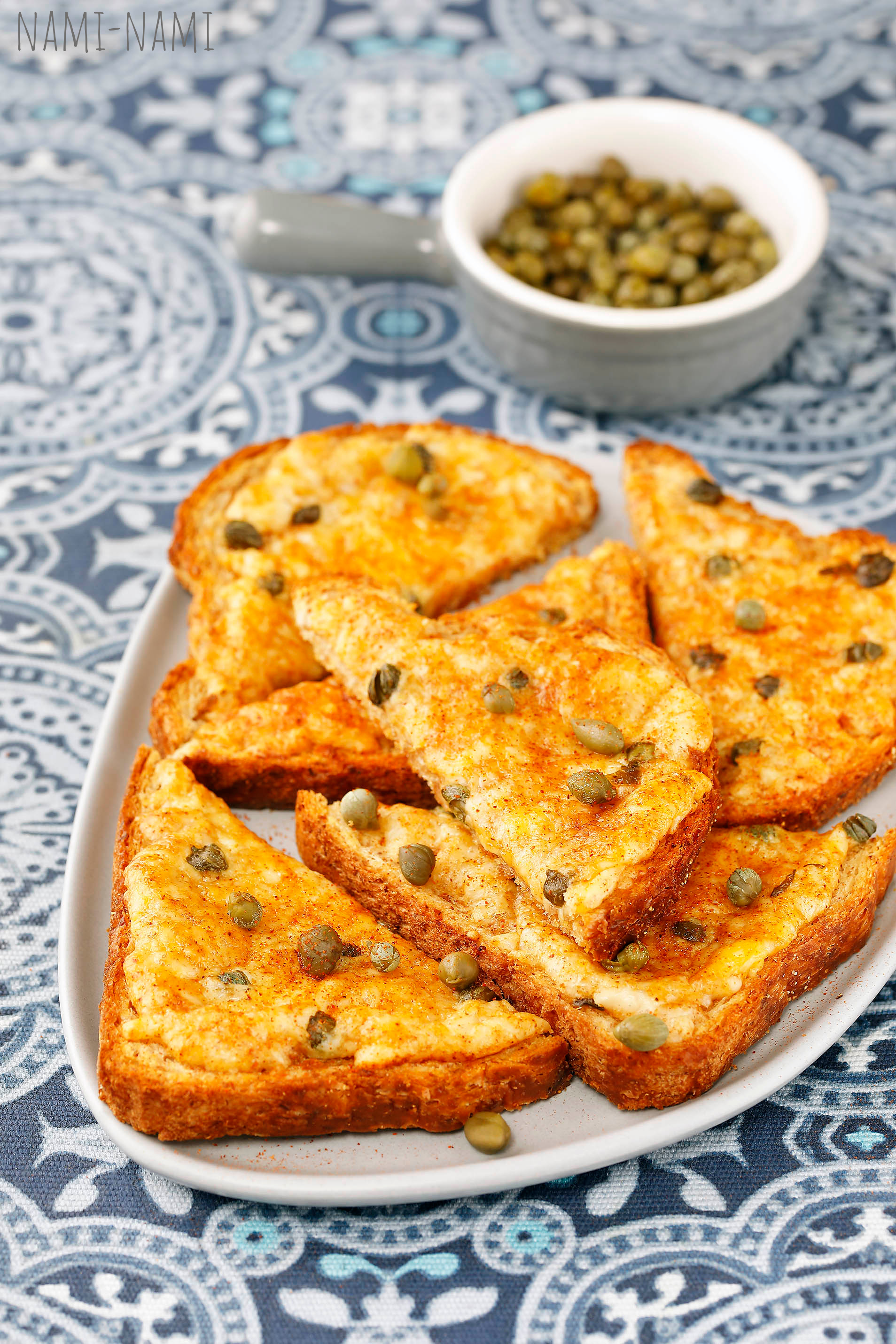 Kuumad ahjuvõileivad paprika-kappari-juustukattega ungari moodi.