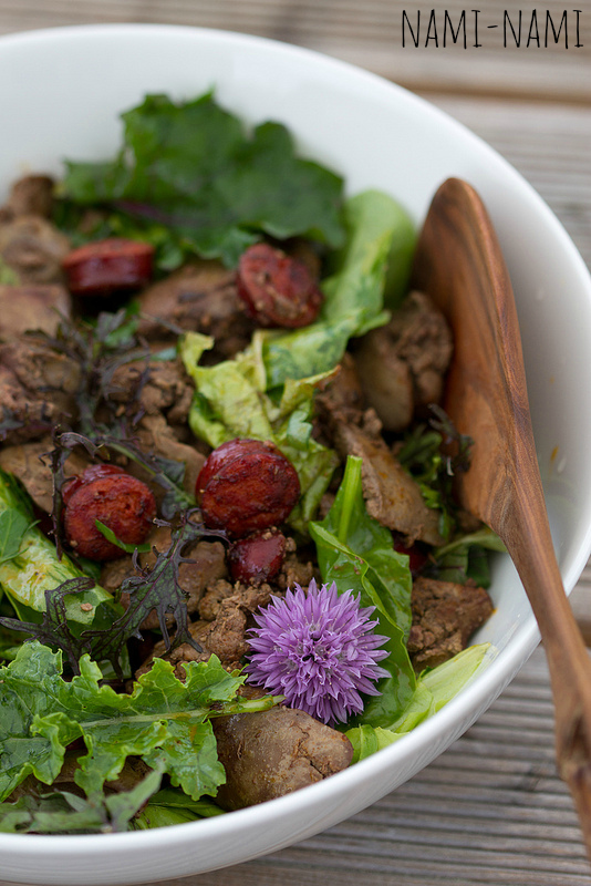 Retsept on briti ajakirjast BBC Good Food (October 2011, Chicken liver and chorizo salad)