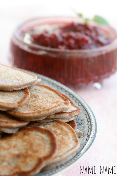 Soodaga kergitatud väikesed kohevad pannkoogid, mille tainas on kasutatud õunamoosi. Või siis õuna-pohlamoosi, nagu juuresoleval fotol :)
