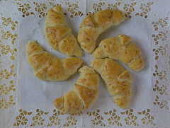 Juustu-pärmitainast väikesed sarvesaiad sobivad hästi nii hommikusöögilauale kui ka supi kõrvale.