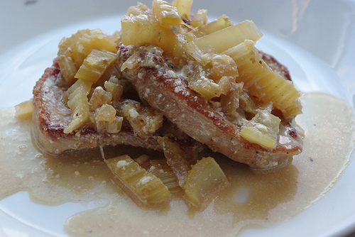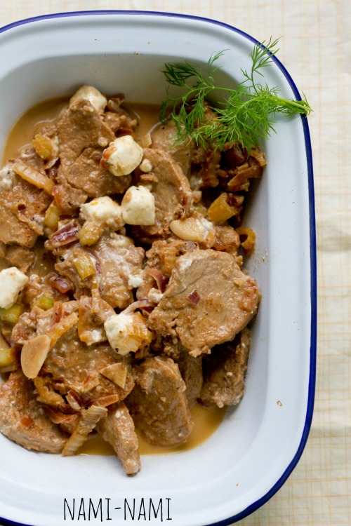 Lõika seafilee üsna õhukesteks viiludeks. Maitsesta soola-pipraga ja pruunista pannil kiirelt õlis mõlemalt poolt. Võta liha pannilt.