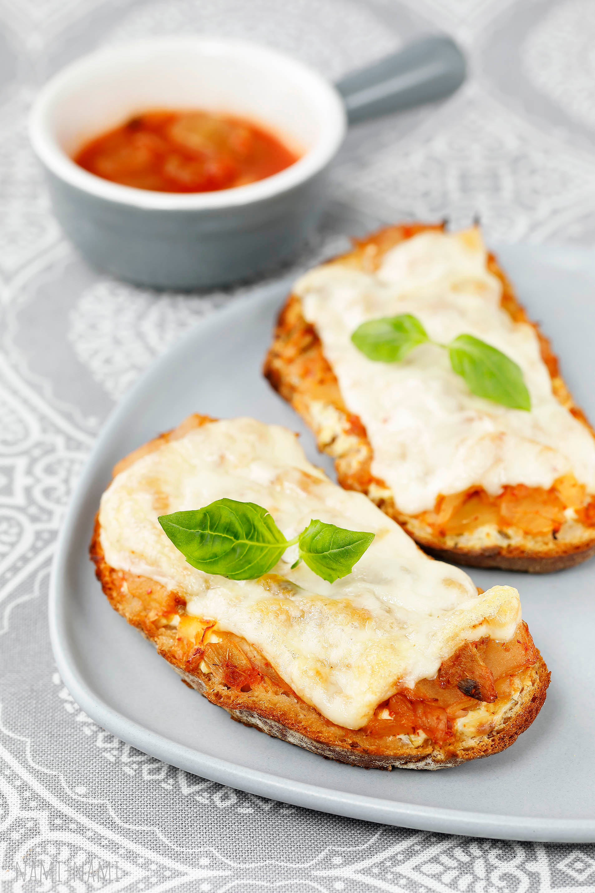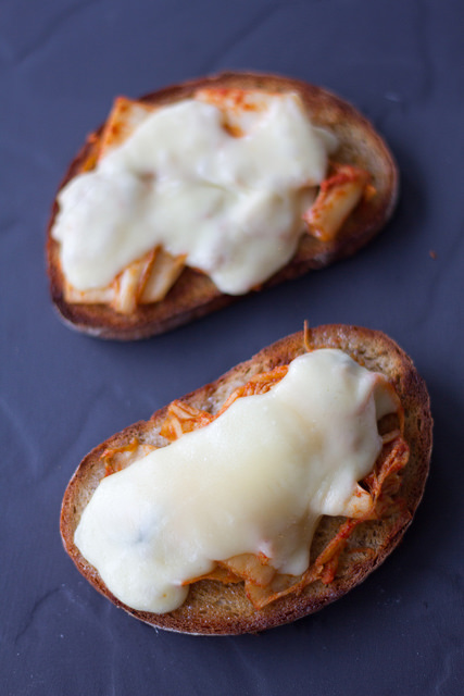 Kimchi on Korea vürtsikas fermenteeritud kapsasalat, mida siin on lisatud kuumale juustuvõileivale.