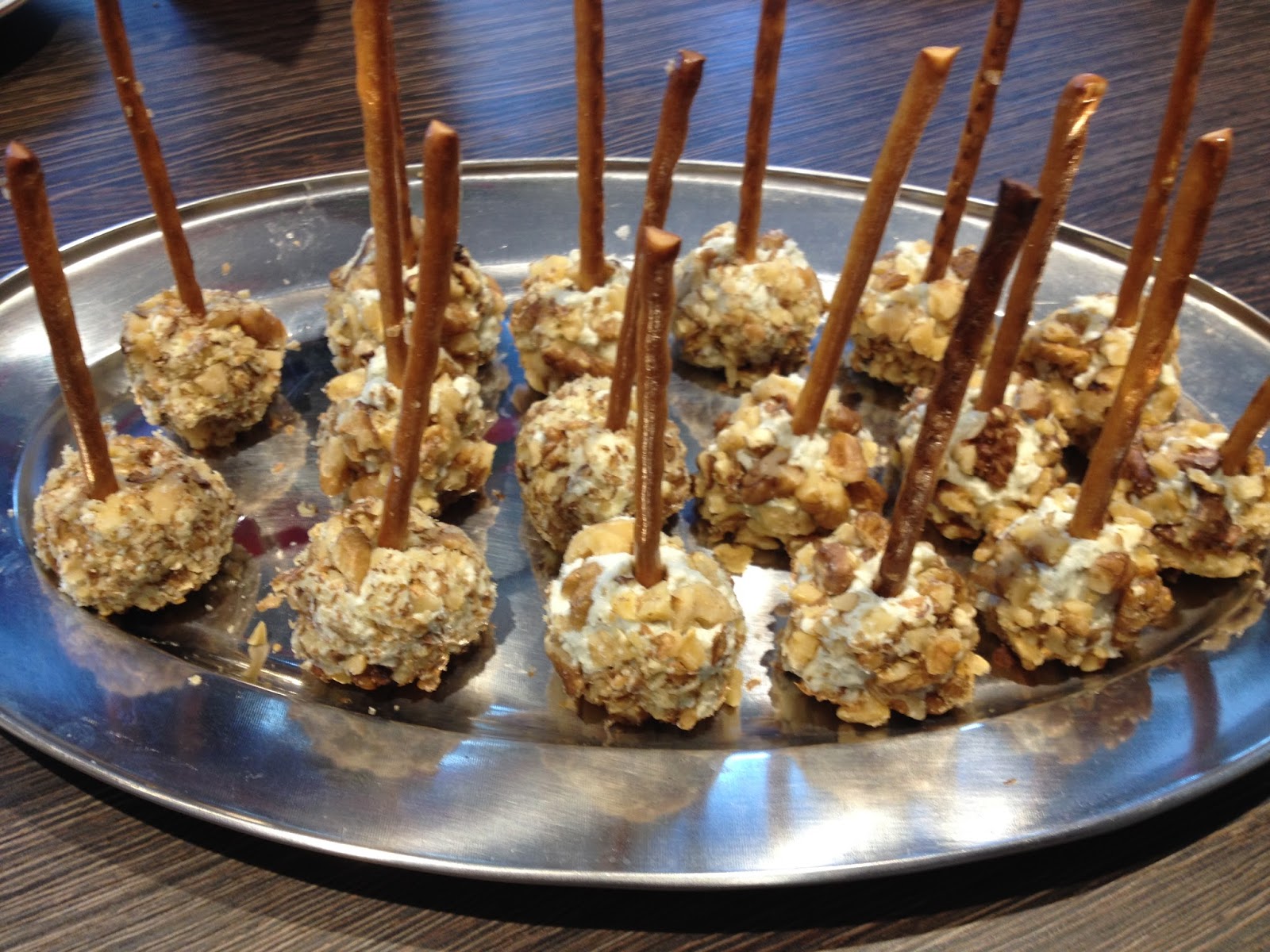 See retsept võlus esmapilgul välimusega - lihtsatest pallidest saab efektse välimuse kõrsikutega! Milline lihtne idee, aga ise selle peale pole tulnud. Kogused sõltusid poes müüdavatest pakenditest: 150 g toorjuustu ja 100 g sinihallitusjuustu ning juurde 50 g riivitud kõvemat juustu. Veidi tilli ka maitseks + hakkisin juurde ka kuivatatud jõhvikaid. Kuna Kreeka ega pekaanipähkleid kodus polnud, veeretasin pallikesi mandlipurus. Mulle meeldisid ja kindlasti teinekordki leiavad need pallikesed tee snäkilauale :)