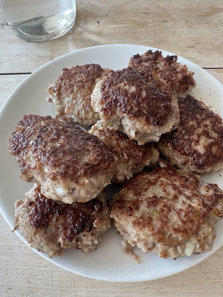 Taani hakk-kotletid ehk frikadeller valmistatakse vasika- ja seahakklihast. Mina olen kasutanud kodust hakkliha, sest vasikaliha on meil raske kätte saada.