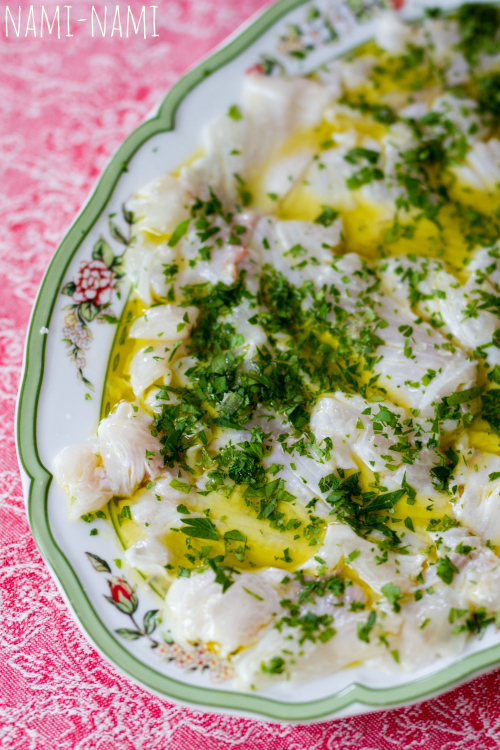 Sega oliiviõli sidrunimahlaga, kalla kalatükkidele. Maitsesta peenelt hakitud peterselli ning gurmeesoolaga ning lase veel pool tundi seista.