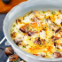 Kuumuta suurel pannil õli, lisa kanahakkliha ja pruunista kergelt. Lisa porru, kuumuta läbi.