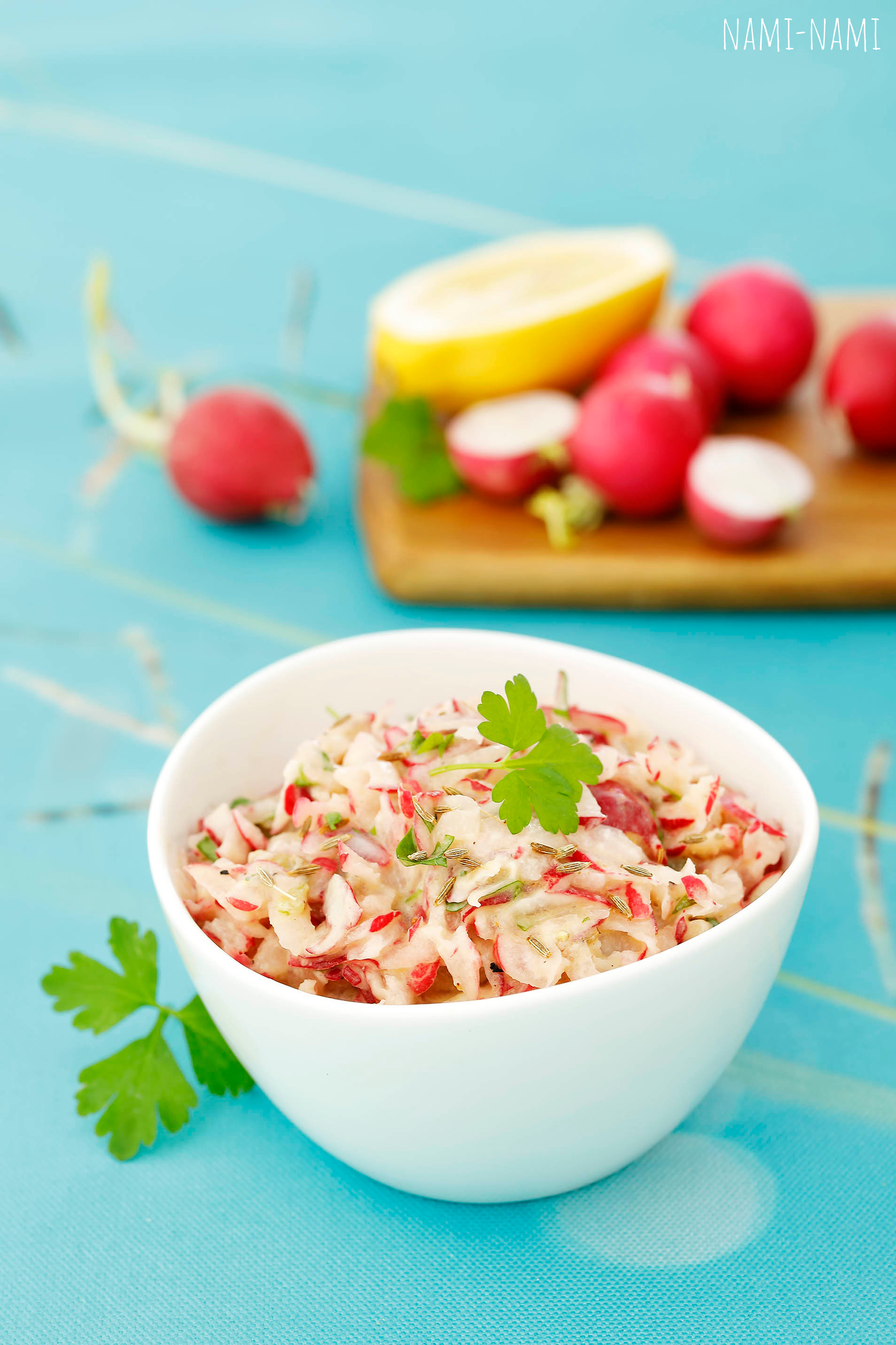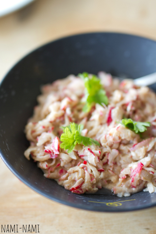 Türgipärane riivitud redise salat seesamikastmega (Tahinli Turp Salatasi).