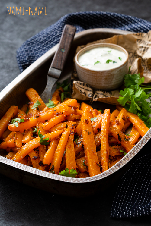 Küpseta 225-kraadises ahjus umbes 20 minutit, küpsetamise ajal friikaid 1-2 korda õrnalt pöörates, kuni kõrvitsafriikad on kuldsed ja krõbedad.