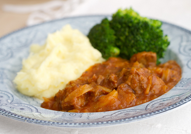Kartulit on sellele guljaššile lisatud kastme paksendajana.