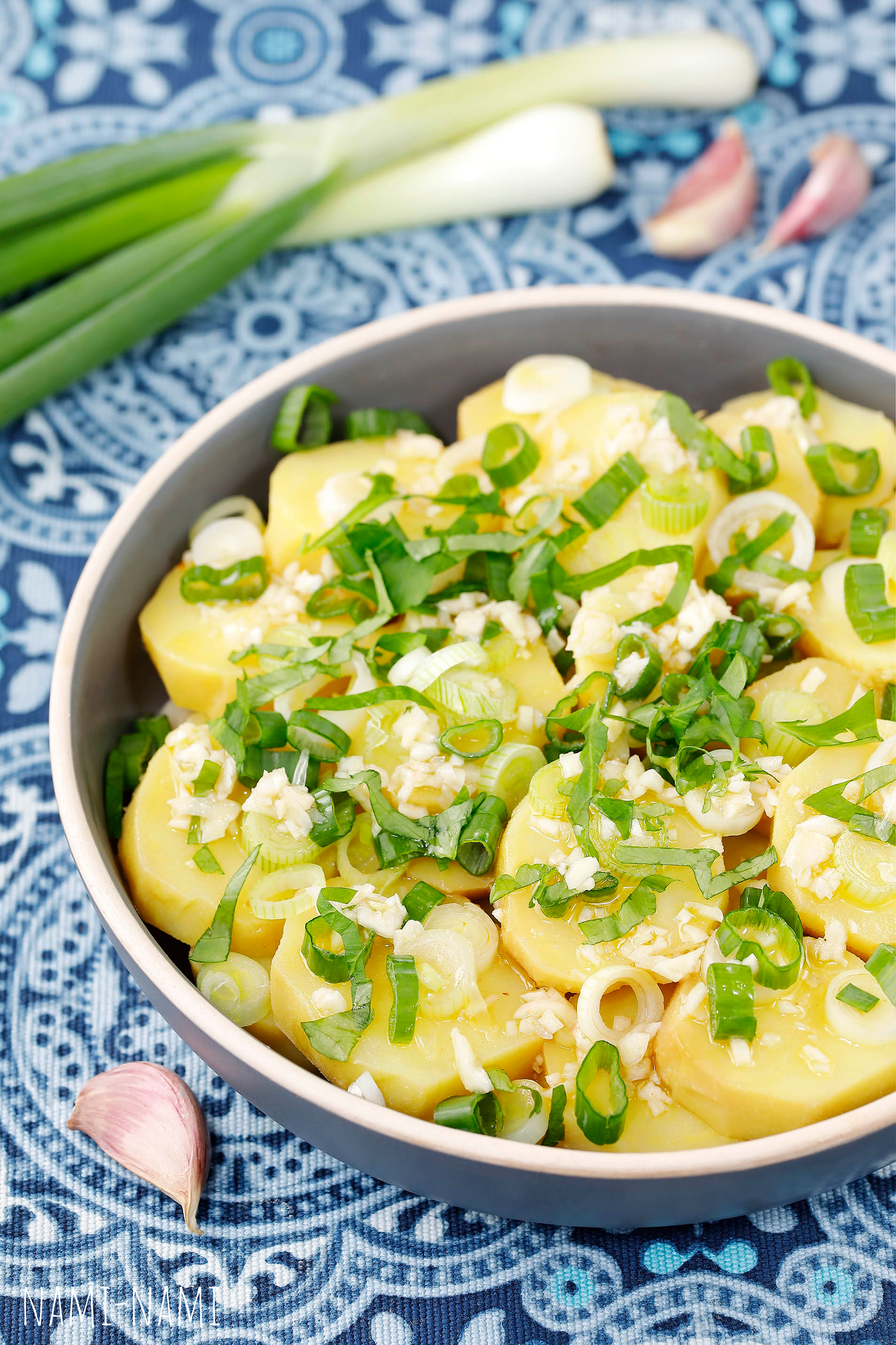 Araabiapärane kartulisalat rohke maitserohelise ja õlikastmega. Sobib ka veganitele.