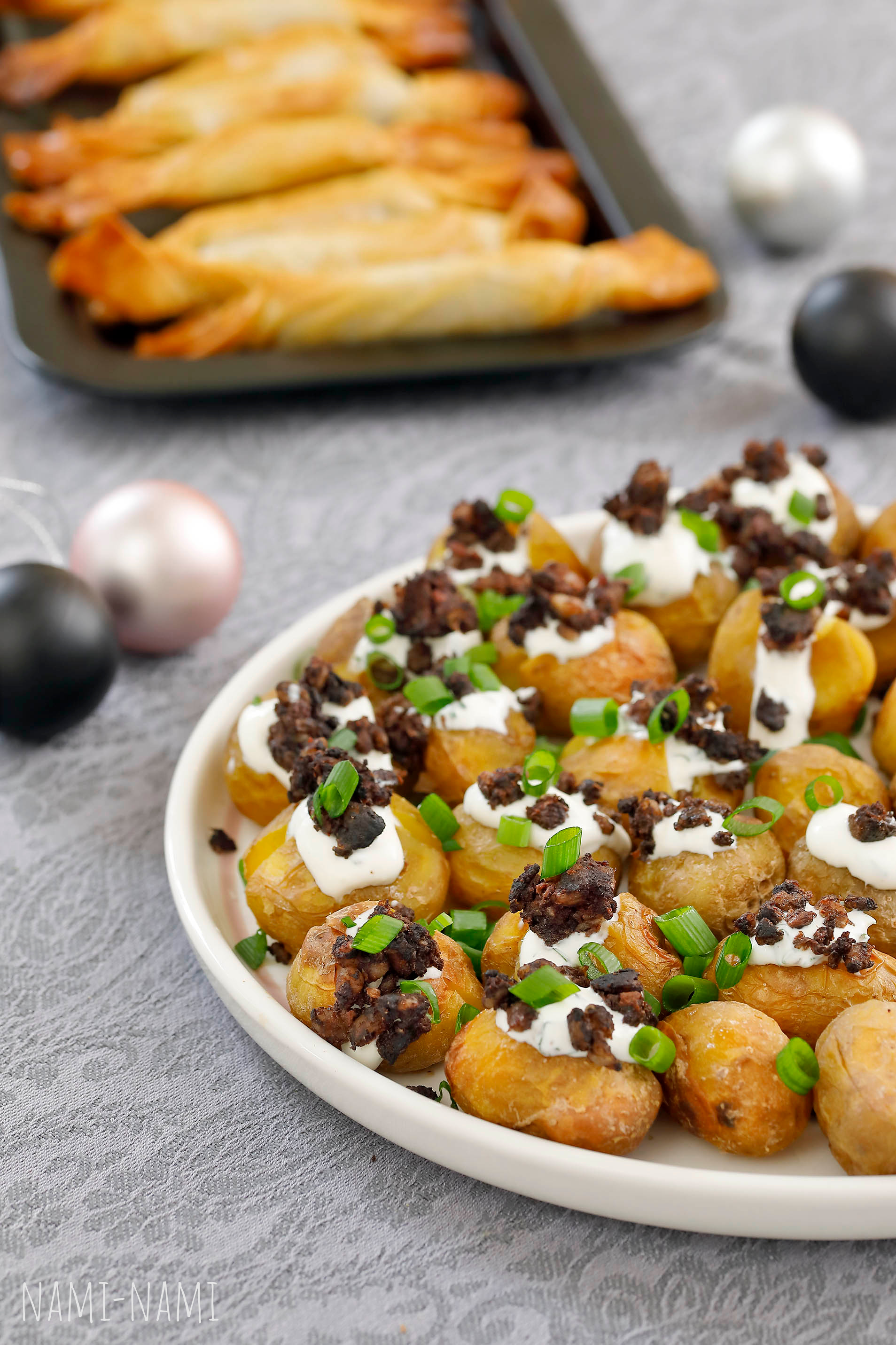 Serveerimiseks tee igale kartulile peale ristlõige, siis suru külgedelt veidi kokku. Tõsta tekkinud süvendisse veidi hapukoorekreemi, siis puista peale krõbedat verivorsti.