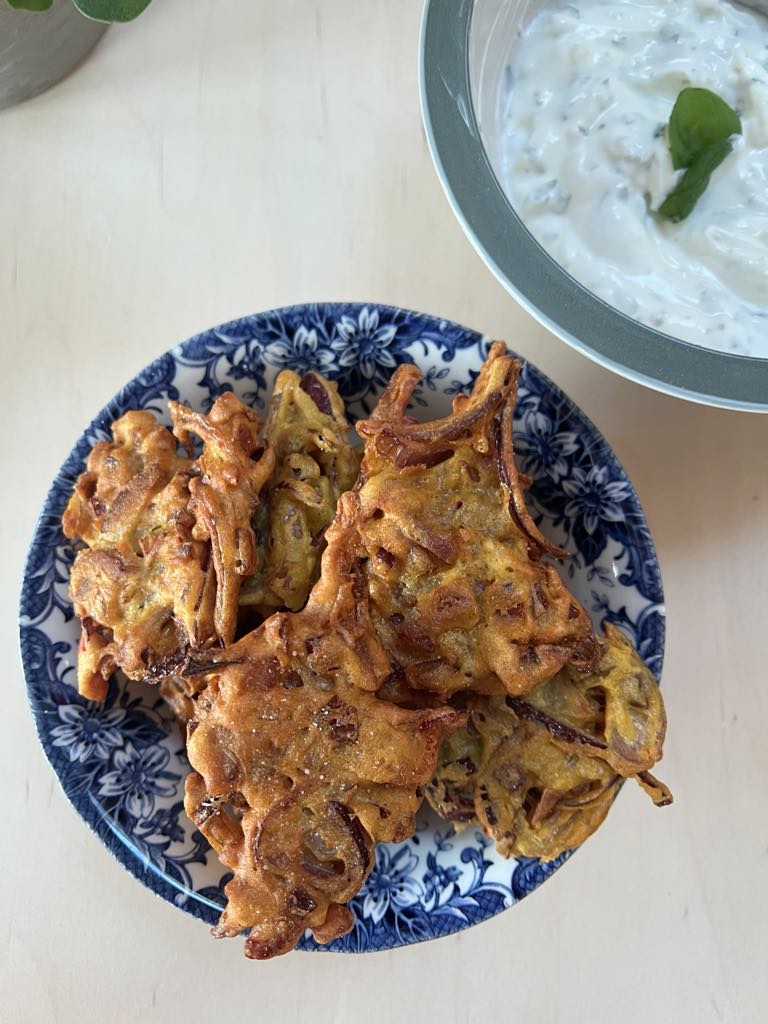 Puista valmis bhaji-pallidele veidi soola ning serveeri raita-kastmega.