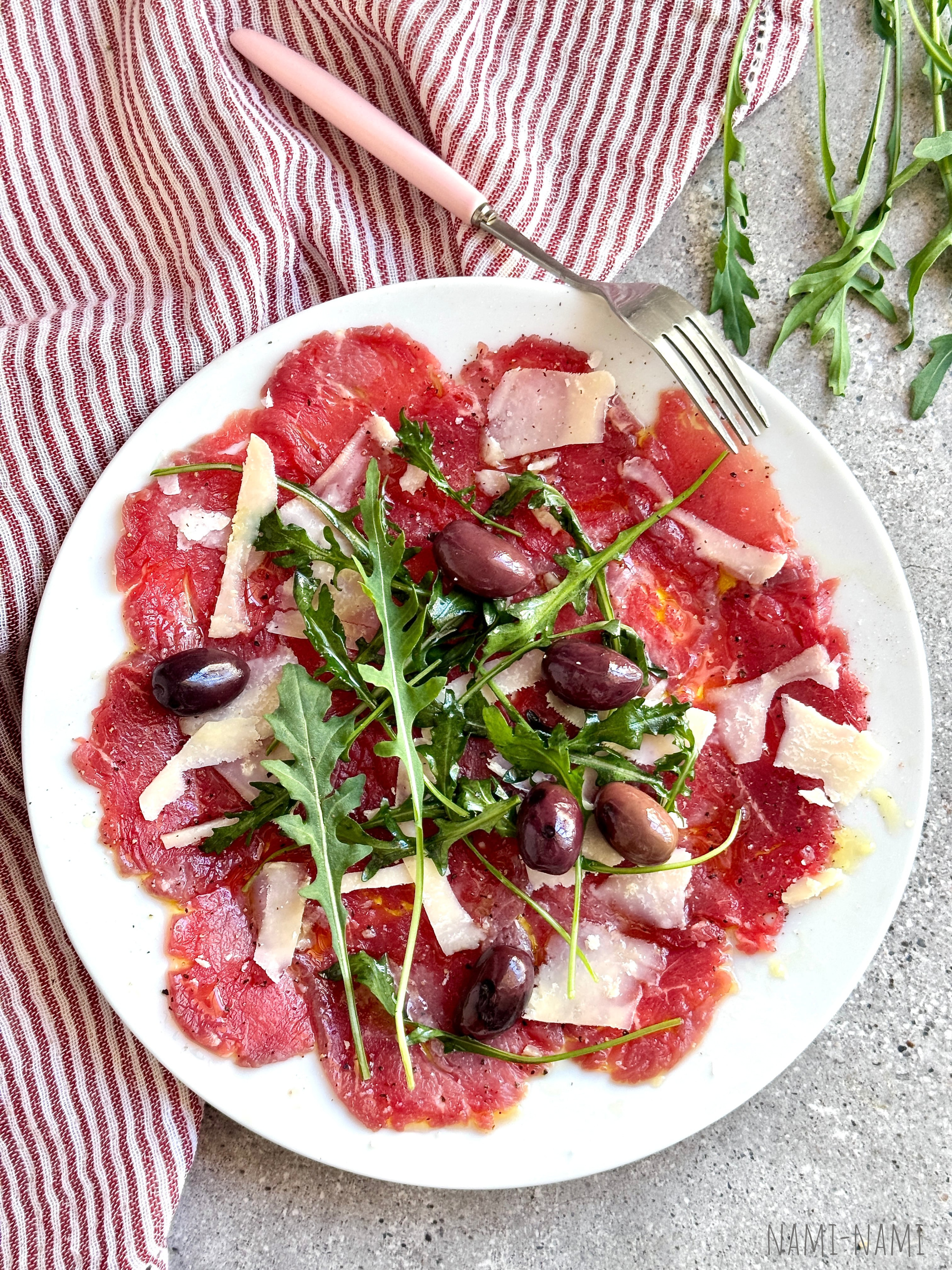 Carpaccio rukola ja oliividega