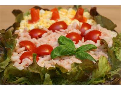 Valmista pealmise kihi ja külgede määrimiseks ürdivõie: lisa vahustatud võile hakitud petersell ja basiilik, maitsesta soola ja pipraga. Sega see alleshoitud tuunikalatäidisega ühtlaseks. Määri võileivatordi peale ja külgedele. Kaunista võileivatort tomati- ja keedumunarataste, tuunikalatükikeste, krevettide ning tilliga, lisa ka musta pipart. Võileivatordi küljed kata salatilehtedega.