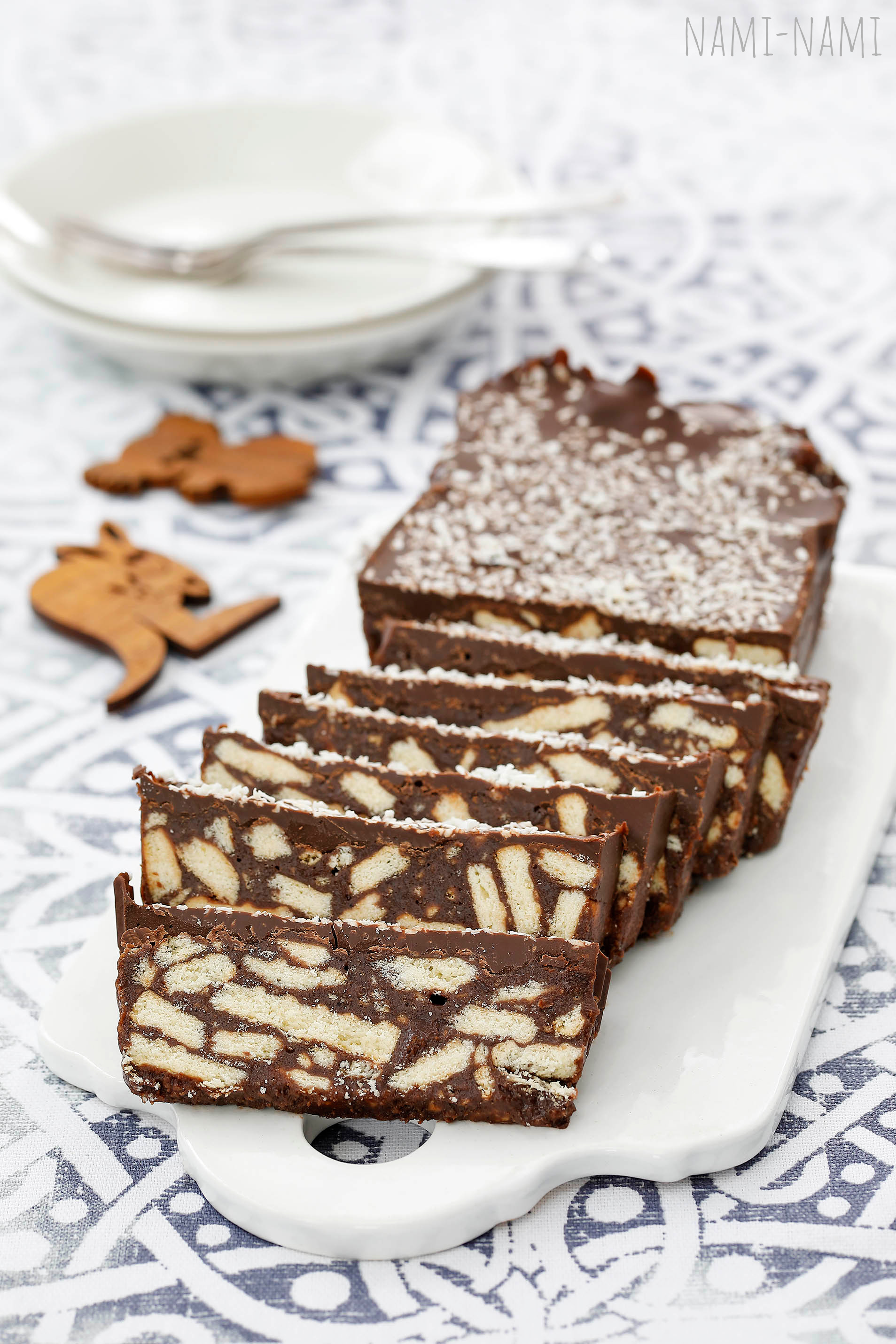 Samal ajal pane küpsised kilekotti, siis tambi pudrunuia või tainarulli abil katki - peaksid sama peene küpsisepuru ja keskmise suurusega küpsisetükkide segu. Pane kotti ka kakaopulber ja kookoshelbed, raputa läbi, et ained seguneksid.