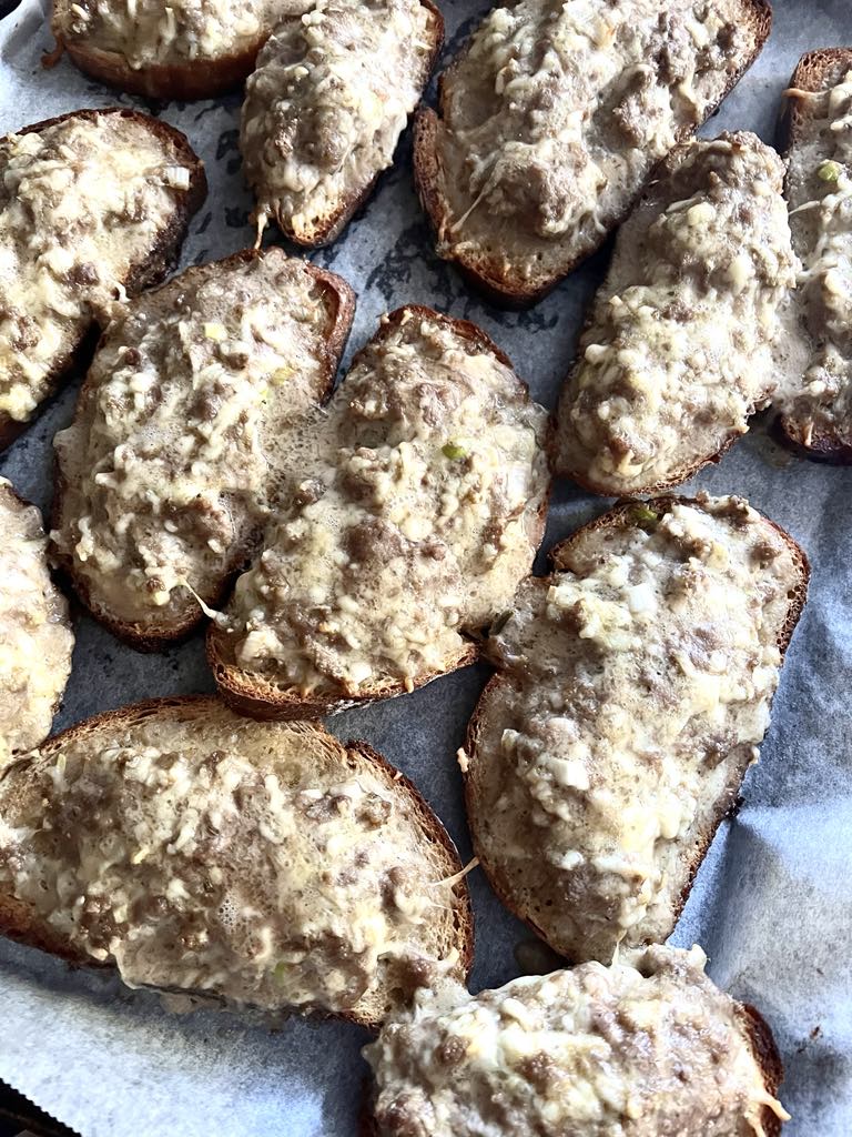 Siis jaota hakklihasegu kuueks ja jaota/määri/suru saiaviiludele.