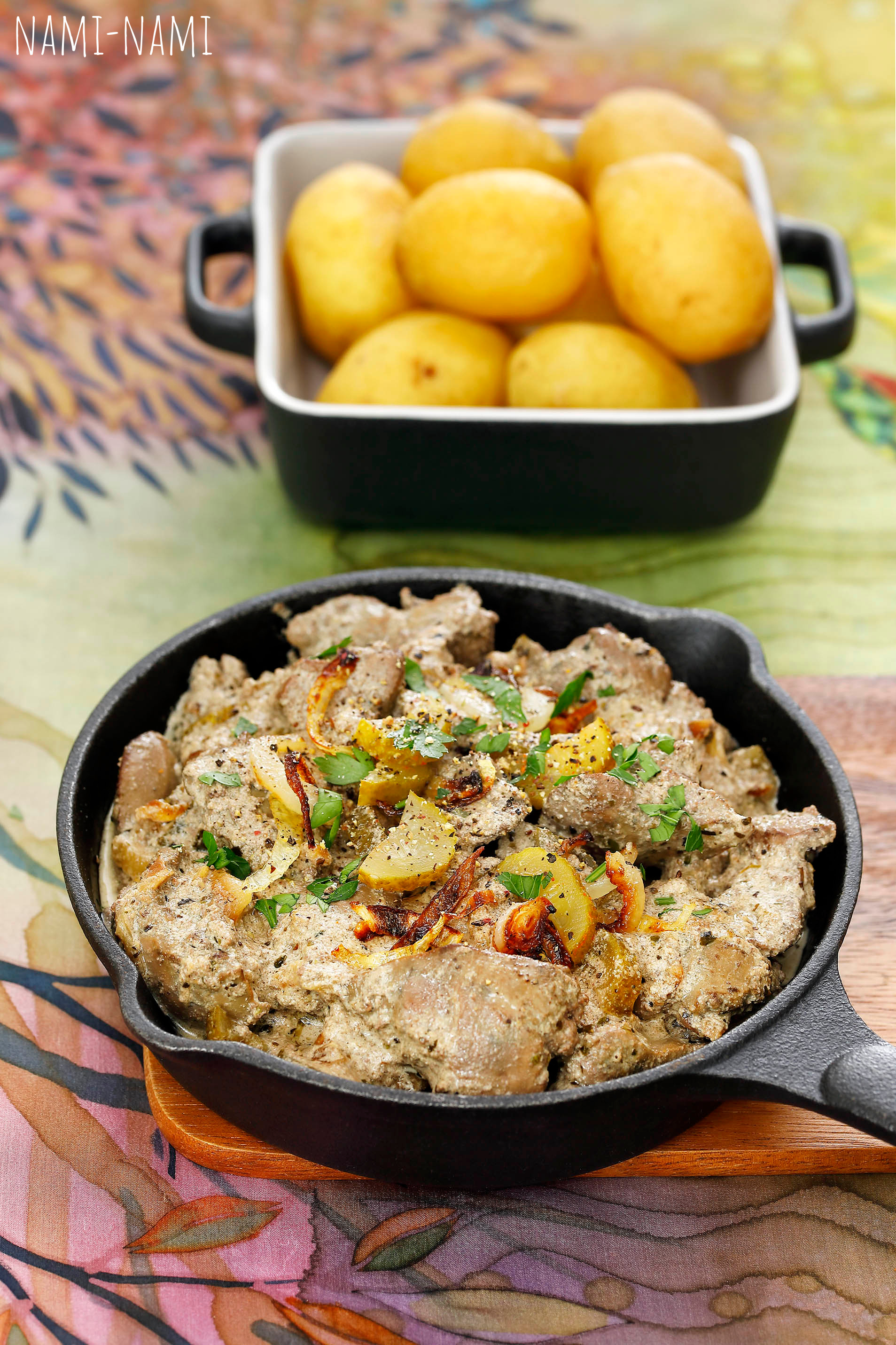 Nüüd lisa pannile kurgitükid ja rõõsk koor. Maitsesta soola, pipra ja kuivatatud ürtidega. Hauta madalal kuumusel 4-5 minutit, kuni maks on küps.