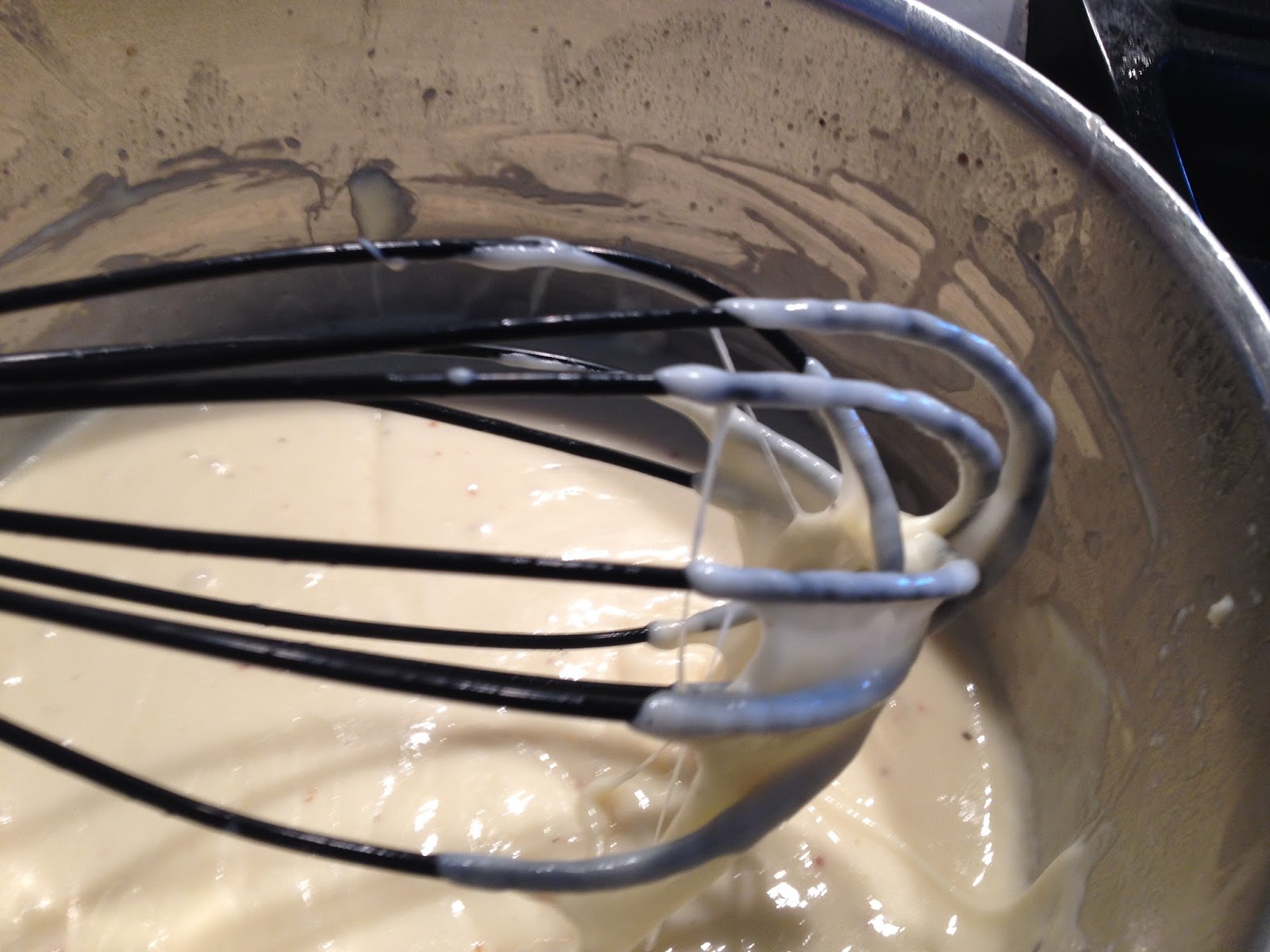 Siis sega jaokaupa hulka juust, pidevalt puulusikaga kenasti segades, et juust ära sulaks (kui liiga palju korraga lisada, läheb juust tänkjaks tükiks).