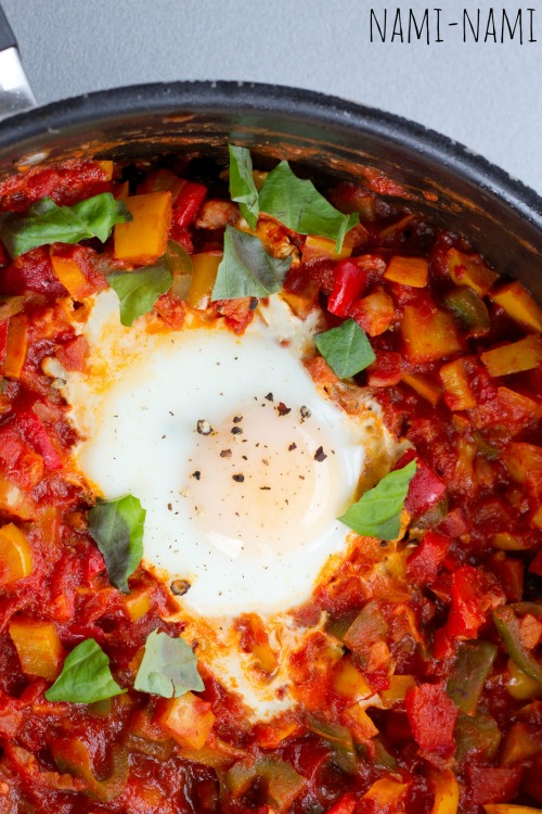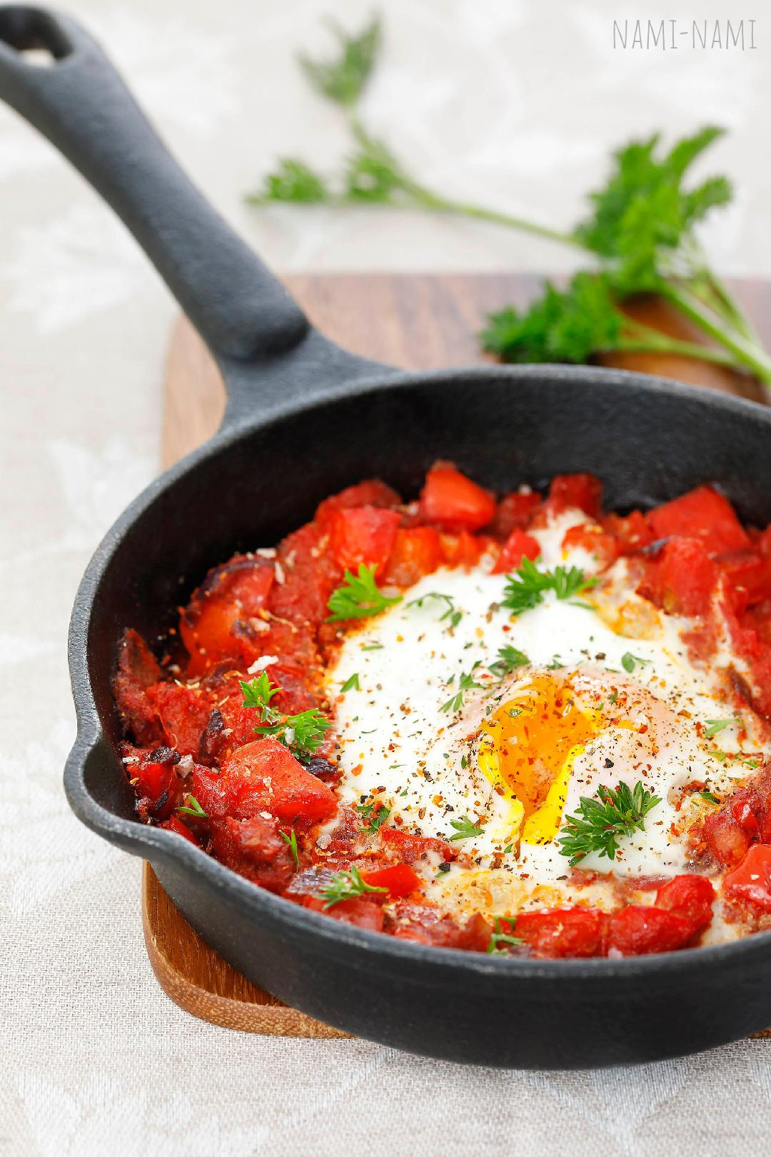 Mõnus peekoni-tomatiroog Baskimaalt, mida siin serveeritakse hautises küpsetatud munadega. Sobib hästi brunch'ile või toekamaks hommikusöögiks!