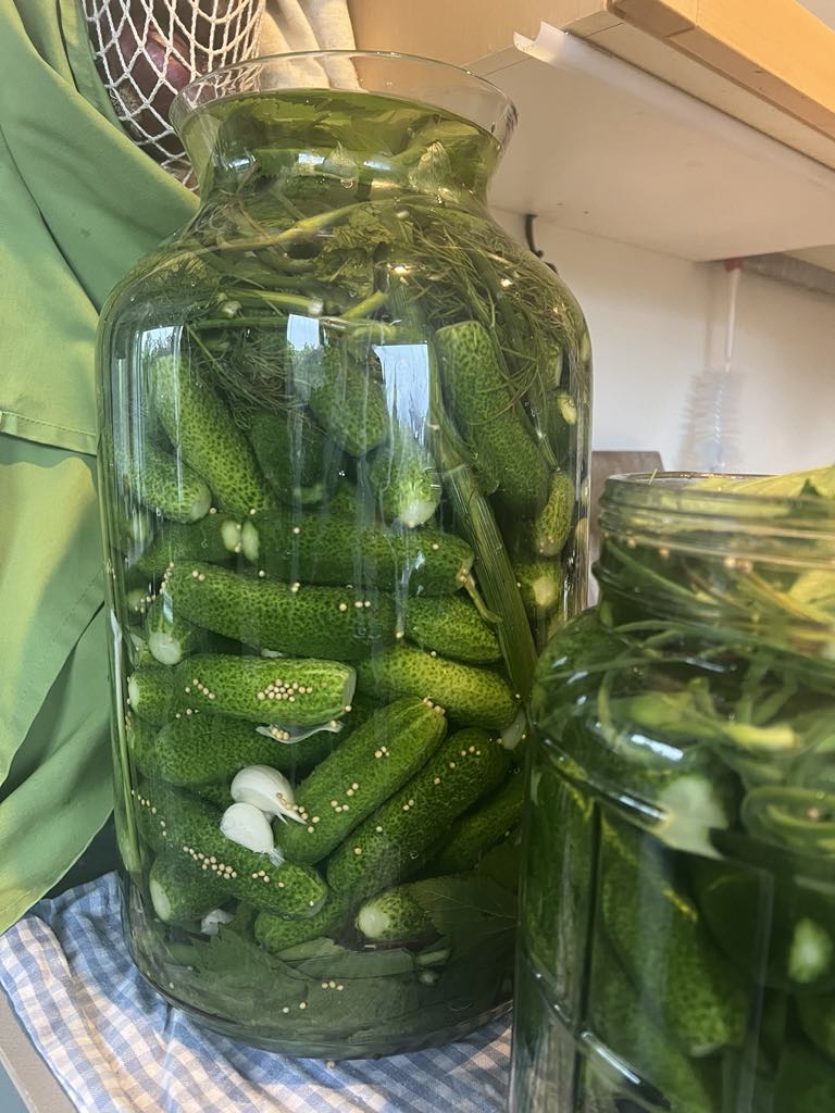 Tegin siin äsja suuuure laari, nimelt 10 kg kurke Viimsi kohvikutepäeva jaoks. Soolvee tegin kuuma ja seda keetsin 3 liitri kaupa, et need kaks suurt purgitäit saada. Imemaitsvad olid, soolvees olid u 1,5 päeva. Said palju-palju kiita :)