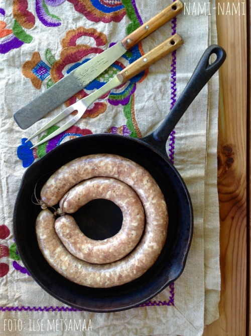 Täida kaunis lõdvalt umbes 60-70 cm pikkustesse seasooltesse. Üks sooleots seo jämeda pakkimisnööriga ja sool tõmba vorstiotsikule või lehtrile.