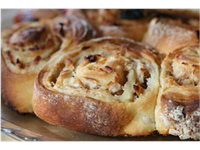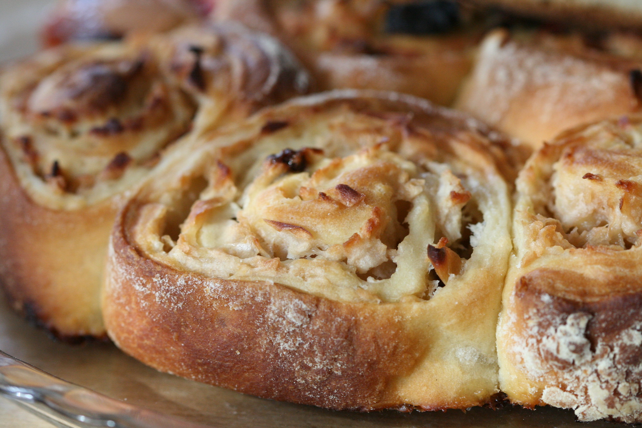 Panin oma tavalise pidusaia vahele kaneeli-suhkrusegu asemel riivitud õunu ja rosinaid. Tulemuseks oli mahlane ja maitsev sai.